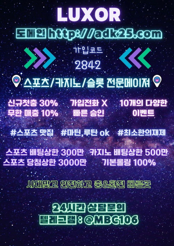♥️ 카지노&슬롯 신규첫충 30% /첫충20% / 매충10% 토지노 루쏘벳 우루륀 0 4 1시간전 ❤️정싸 토지노 LUXOR❤️ 카지노&슬롯 신규첫충 30% /첫충20% / 매충10% 모든게임사 모든게임 모든테이블 가능 복귀이벤트 첫충전 20% / 생일이벤트 30% 지인누적 100 입금시 100,000p 지급 지인누적 300 입금시 300,000p 지급 USDT 충전 가능(개별문의) 주기적인 돌발이벤트 진행 가입승인전화 X 24시간 확실케어 텔레문의 :MBC106